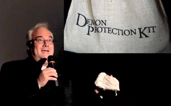 The Conjuring: Priest Blesses ‘Demon Protection Kits’ (Video) + Full Photo Gallery A lot of mystery surrounded a special screening of The Conjuring (out July 19) in Los Angeles. Dozens of small white bags were laying on top of a table. Their content was revealed when a real priest grabbed the microphone. After talking about the religious connotations of the horror movie, he blessed the “Demon Protection Kits”. The souvenirs contained holy water, a rosary and more. Yes, it is a clever marketing gimmick. But I believe that the positive influence that the Church could have should be used in more important fronts. What do you think? Watch our exclusive video and a complete photo gallery of the frightening possession/ghost story. “Before there was Amityville, there was Harrisville. Based on the true life story, “The Conjuring” tells the tale of how world renowned paranormal investigators Ed and Lorraine Warren were called upon to help a family terrorized by a dark presence in a secluded farmhouse. Forced to confront a powerful demonic entity, the Warrens find themselves caught in the most horrifying case of their lives. “The Conjuring” stars Academy Award® nominee Vera Farmiga (“Up in the Air,” TV’s “Bates Motel”) and Patrick Wilson (“Insidious,”) as the Warrens, and Ron Livingston (“The Odd Life of Timothy Green”) and Lili Taylor (TV’s “Hemlock Grove”) as Roger and Carolyn Perron, residents of the house. “ The Conjuring manifests itself into theaters on July 19.