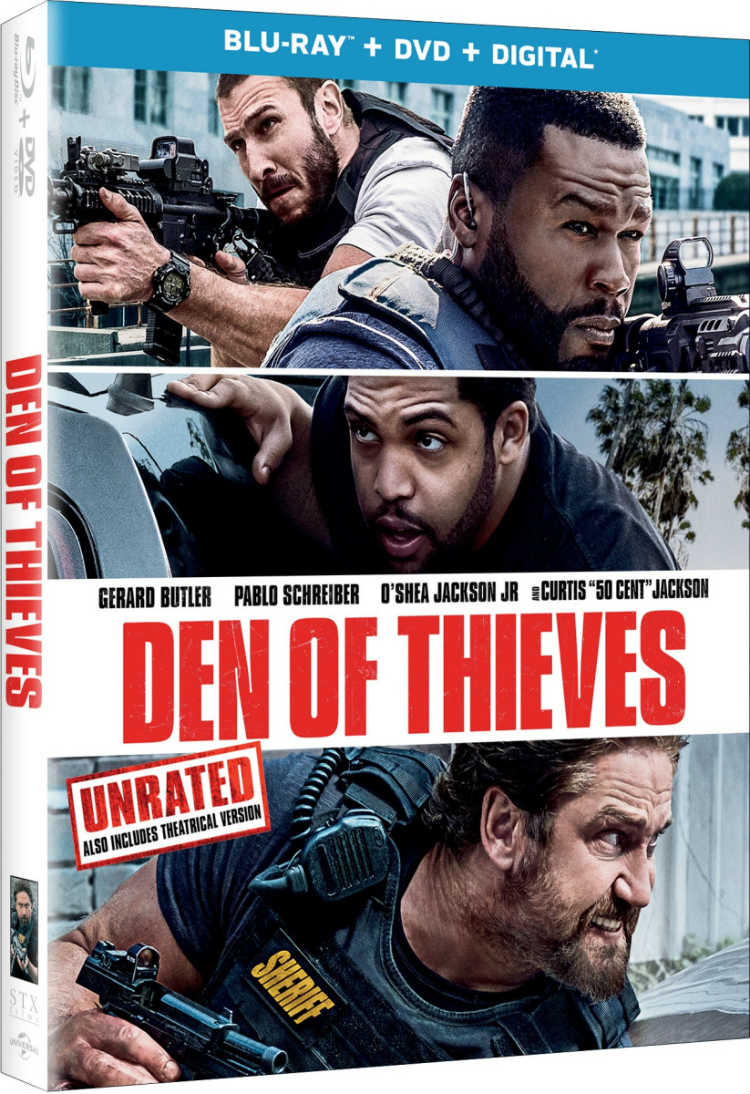 DEN OF THIEVES Blu-ray/DVD Combo Pack Giveaway Enter our movie giveaway for a chance to win a copy of the DEN OF THIEVES Blu-ray™/DVD Pack (in stores April 24)! The film, directed by Christian Gudegast, stars Gerard Butler, O’Shea Jackson Jr., 50 Cent, Evan Jones, and Pablo Schreiber. STEP 1: Follow us on Facebook, Twitter, Instagram, and YouTube. STEP 2: Send us an email with the subject “DEN OF THIEVES Blu-ray,” your full name and mailing address (no P.O. boxes) to giveaway@desdehollywood.com. Randomly selected winners will receive one copy via mail. The action thriller is now available on Digital, and arrives on Blu-ray™, DVD and On Demand on April 24, from STXfilms and Universal Pictures Home Entertainment. A gritty Los Angeles crime saga which follows the intersecting and often personally connected lives of an elite unit of the LA County Sheriff’s Dept. and the state’s most successful bank robbery crew as the outlaws plan a seemingly impossible heist on the Federal Reserve Bank of downtown Los Angeles.