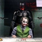 Fotos de Impresionante Figura Coleccionable del Joker/Guasón de Heath Ledger y del Batman en TDKR (Hot Toys) Aunque su título hacía referencia a Batman, la segunda película del héroe creada por Christopher Nolan quedaría grabada en la historia del cine gracias a otro personaje. La magistral interpretación de Heath Ledger catapultó a su versión de el Joker a las páginas inmortales de la cultura popular. Varios productos han capitalizado su popularidad en el pasado, pero ninguno como esta nueva figura de colección. La empresa Hot Toys utilizó a los mejores artistas en la industria y la más alta tecnología para esculpir una detallada cabeza del fallecido actor. Además de su indumentaria, esta versión de lujo titulada Joker 2.0 DX incluye réplicas de varios elementos de El Caballero de la Noche. Pero Batman también tiene su actualización, la cual fue revelada con una foto que recrea la escena del interrogatorio. Más detalles en la página de Facebook de Hot Toys. ¿Podrá Tom Hardy y su Bane impactarnos en The Dark Knight Rises de la misma manera? El Caballero Oscuro: La leyenda renace en IMAX el 20 de Julio del 2012 (fecha de estreno en Estados Unidos). ¡Gracias por compartir este artículo de DesdeHollywood.com en Facebook y Twitter!