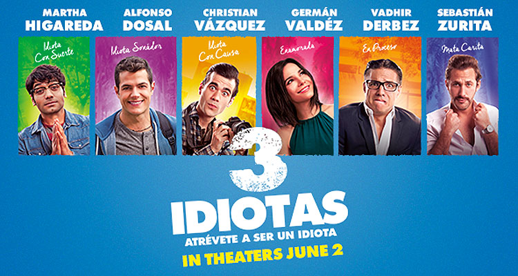 Paulina Dávila, Sebastián Zurita y Vadhir Derbez Hablan de 3 IDIOTAS y Más Recientemente tuve el placer de entrevistar a parte del estelar elenco de la nueva comedia 3 IDIOTAS, la colombiana Paulina Dávila, y los mexicanos Sebastián Zurita y Vadhir Derbez. La cinta se estrena en cines de EE.UU. este viernes 2 de Junio. Érase una vez….un grupo de 3 idiotas! El guapo, el nerdo y el inteligente! 3 entrañables amigos quienes viven experiencias inolvidables en sus años de “pubertad”, creando un lazo de amistad y complicidad que logran superar los obstáculos más inesperados. Pero es hasta cuando 5 años después de la graduación, Pancho, el corazón del grupo se desaparece un día antes de la graduación y Felipe y Beto deciden ir a su busca. Entre risas y aventura, corazones y “pantalones rotos”, 3 Idiotas está llena de momentos inesperados y ni creerás en donde “fregados” estará Pancho!!!
