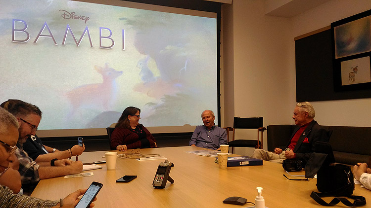 Special Disney Event for BAMBI 75th Anniversary Edition Blu-ray/DVD One of the most beloved and defining animated films, BAMBI, gets a pristine new home release celebrating its 75th anniversary. I felt like a rabbit thumping my foot with joy when I was invited to The Walt Disney Studios in Burbank for a special event. After exploring Walt’s office -what felt like traveling back in time- members of the press had the chance to speak with Paul Felix, Visual Developmental Artist at WDAS, and the only two living members of the voice cast, Donald “Donnie” Dunagan (young voice of “Bambi”) and Peter Behn (young voice of “Thumper”). Both performers shared incredibly rich and heartwarming stories about their voice-acting experience many decades ago, but also their current interactions with fans from all over the world. Take a look below at our exclusive photos from the event, and a brief video I did in Spanish. BAMBI is available now on Digital HD and Disney Movies Anywhere, Blu-ray™, DVD and On-Demand. BRAND NEW BONUS MATERIAL (BLU-RAY & DIGITAL* HD) INCLUDES: THE BAMBI EFFECT – “Bambi” was full of innovations for its time. Let’s take a look at how those past innovations affected future Disney animated titles all the way up to today. STUDIO STORIES: “BAMBI” – Recordings of Walt Disney. Listen in on intimate moments where he discusses the challenges, pitfalls and triumphs during the production of “Bambi.” DELETED SCENE: BAMBI’S ICE AND SNOW – Bambi coaxes Thumper and his brothers and sisters to come play on the ice during the first snow. DELETED SCENE: THE GRASSHOPPER – A grasshopper confronts Bambi and Thumper and finds himself in quite a predicament. BAMBI FAWN FACTS – Think you know everything there is to know about Bambi and his forest companions? Well, it’s time to discover some fun real-life facts about the creatures that live in the forest he calls home. OSWALD THE LUCKY RABBIT: “AFRICA BEFORE DARK” – Oswald Short. CELEBRATING TYRUS WONG (DIGITAL EXCLUSIVE) – A heartfelt look at the man who played a key role in the success of “Bambi.” Much like Mary Blair and Eyvind Earle, Tyrus Wong had a unique signature style all to his own. The soft water-colored backgrounds and beautiful palettes in “Bambi” were inspired by Tyrus’ concept art paintings.