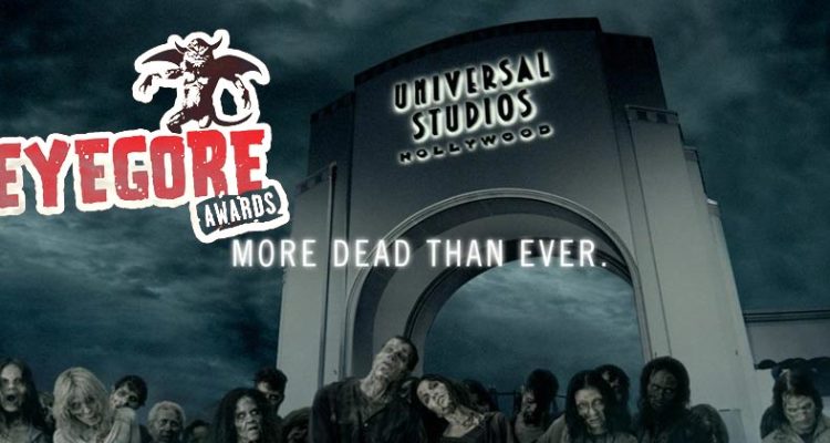 Universal Studios’ Halloween Horror Nights Fans Can Attend The Eyegore Awards In just a few days Universal Studios Hollywood will be invaded by hordes of horror fans, thirsty for the kind of thrills that only this outstanding event can provide. For the first time, the first 500 attendees will be able to enjoy the star-studded red carpet ceremony “Eyegore Awards” purchasing a special add-on ticket. Get all the details in the official press release below. Universal Studios Hollywood kicks off “Halloween Horror Nights” with the annual “Eyegore Awards,” honoring Hollywood horror icons. 2014 recipients include: filmmaker and Founder & Chairman of El Rey Network, Robert Rodriguez (“Sin City: A Dame to Kill For,” “From Dusk Till Dawn,” “Machette,” “Grindhouse”), presented by prolific actor, producer and last year’s “Eyegore Award” recipient, Danny Trejo; Greg Nicotero, Executive Producer and Special Effects Make-Up Supervisor of AMC’s “The Walking Dead,” presented by host of AMC’s “The Talking Dead,” Chris Hardwick and Robert Kirkman, Creator and Executive Producer of “The Walking Dead” and “Outcast;” filmmaker John Landis (“An American Werewolf in London” and Michael Jackson’s “Thriller”), presented by Rick Baker, seven-time Academy Award-winning Special Effects Make-Up Artist and previous “Eyegore Award” recipient; and Grammy Award winner and Rock and Roll Hall of Fame guitarist, SLASH. SLASH to perform with Myles Kennedy at award’s presentation finale. Additional celebrities in attendance to include: “From Dusk Till Dawn” cast members, Wilmer Valderrama, D.J. Cotrona, Jesse Garcia and Eiza Gonzalez, Mötley Crüe’s Tommy Lee, UFC Fighter Chuck Liddell and Tara Reid (“Sharknado”), among others. This year’s “Halloween Horror Nights” will be “More Dead Than Ever” as it brings together the sickest minds in horror to immerse guests in the living, breathing, three-dimensional world of the most notorious and terrifying creatures in existence. All-new terrifying mazes include “The Walking Dead: The End of the Line,” based on AMC’s critically-acclaimed, award-winning TV series; “From Dusk Till Dawn,” inspired by Robert Rodriguez’s cult film and TV series; “Clowns 3D Music by Slash,” featuring an original maze score created by the famed guitarist; “Dracula Untold: Reign of Blood,” based on Universal Pictures’ upcoming epic action-adventure; “AVP: Alien vs. Predator,” based on the Twentieth Century Fox film franchise; “An American Werewolf in London,” based on Universal Pictures’ Academy Award-winning and genre-defining film; “Face Off: In the Flesh,” based on Syfy’s hit TV series; and “The Purge: Anarchy,” a new scare zone inspired by Universal Pictures’ blockbuster thriller. More information at www.HalloweenHorrorNights.com/hollywood.