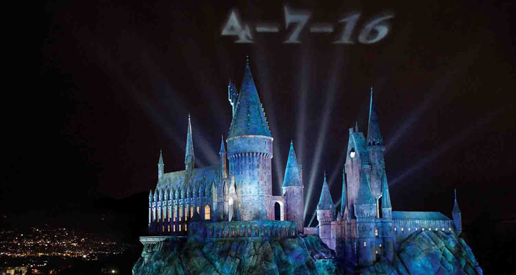 The Wizarding World of Harry Potter at Universal Studios Hollywood Gets Opening Date Mark your calendars Harry Pottter fans! Thursday, April 7, 2016, is the opening day for the highly anticipated “The Wizarding World of Harry Potter” at Universal Studios Hollywood. Watch the special video announcement, the new TV commercial (in English and Spanish), and read all the details in the official press release below. It’s official: “The Wizarding World of Harry Potter™” will open at Universal Studios Hollywood on Thursday, April 7, 2016, marking the highly-anticipated arrival of the West Coast’s dynamic new immersive experience at The Entertainment Capital of L.A. This eagerly-awaited news coincides with the launch of the destination’s spellbinding campaign, which is stylistically designed to sweep guests into the land’s magical world through the lens of imagination. The campaign is anchored by a new television spot designed to build suspense and enthusiasm while evoking a sense of wonder and succinctly capture the magical appeal that “The Wizarding World of Harry Potter” has for cross-generational consumers as it announces the April 7 opening date. In making the exciting announcement, Universal Studios Hollywood illuminated the land’s Hogwarts castle to signal the arrival of today’s momentous news. To see the new campaign spot including a glimpse of the new land and today’s news, please click here. More than five years in the making, and inspired by J.K. Rowling’s compelling stories and characters that were brought to life in the Warner Bros. films, “The Wizarding World of Harry Potter” is being masterfully recreated with impeccable detail as a real-world interpretation at Universal Studios Hollywood. The land will be faithful to the visual landscape of the fiction and films, including Hogwarts castle which will serve as its iconic focal point. From its snow-capped roofs and cobblestone streets to the historic British sensibilities that characterize the whimsical look and feel of the land, “The Wizarding World of Harry Potter” will transport guests of all ages to the very places they read about in the stories or watched on the silver screen. Upon entering the land through the archway, Hogsmeade will bustle to life with the same vitality of a quaint local village: merchants hard at work, a train conductor welcoming new arrivals and a pub packed to the gills with hungry patrons, but with the added element of enthusiastic guests intent on experiencing them all, including the land’s signature ride, “Harry Potter and the Forbidden Journey,” and the family outdoor coaster, “Flight of the Hippogriff™.” An achievement in pioneering theme park ride technology, “Harry Potter and the Forbidden Journey” will make its U.S. debut at Universal Studios Hollywood in hyper-realistic 3D-HD designed to further immerse guests in an already engaging storyline. The multidimensional thrill ride features a groundbreaking robotics ride system, fused with elaborate filmed action sequences and immersive visceral effects. In this updated adaptation of the ride, guests will sport Quidditch-inspired 3D goggles as they venture through journeys experienced by Harry and his friends, spiraling and pivoting 360-degrees along an elevated ride track on a whirlwind adventure of a lifetime. Also within “The Wizarding World of Harry Potter,” the enchanting family coaster, “Flight of the Hippogriff™” will open as Universal Studios Hollywood’s first outdoor roller coaster. “The Wizarding World of Harry Potter” will resonate with immense detail, inviting guests to revel in Harry Potter’s world with the opportunity to enjoy authentic food and beverage at multiple locations, including Three Broomsticks™, and Hog’s Head pub, as well as the Magic Neep and Butterbeer™ carts. A foray through the shops will add to the authenticity of the land with eight retail venues and locations, including Honeydukes™, Ollivanders™, Owl Post™, Zonko’s™ Joke Shop, Wiseacre’s Wizarding Equipment, Dervish and Banges, Gladrags Wizardwear and Filch’s Emporium of Confiscated Goods™. Currently, Universal Studios Hollywood in-park guests can experience and purchase authentic merchandise, including wands, robes and other collectibles from “The Wizarding World of Harry Potter,” available within the Features Presentation shop, located just inside the theme park’s main entry. As the countdown to the April 7th opening date continues, the website invites guests to learn more by signing up for the latest news and information at www.universalstudioshollywood.com/harrypotter/signup. Join the conversation online using #WizardingWorldHollywood. Like Universal Studios Hollywood on Facebook and follow @UniStudios on Instagram and Twitter. Universal Studios Hollywood Illuminates the Hogwarts Castle Announcing The Opening Date for Wizarding World of Harry Potter.